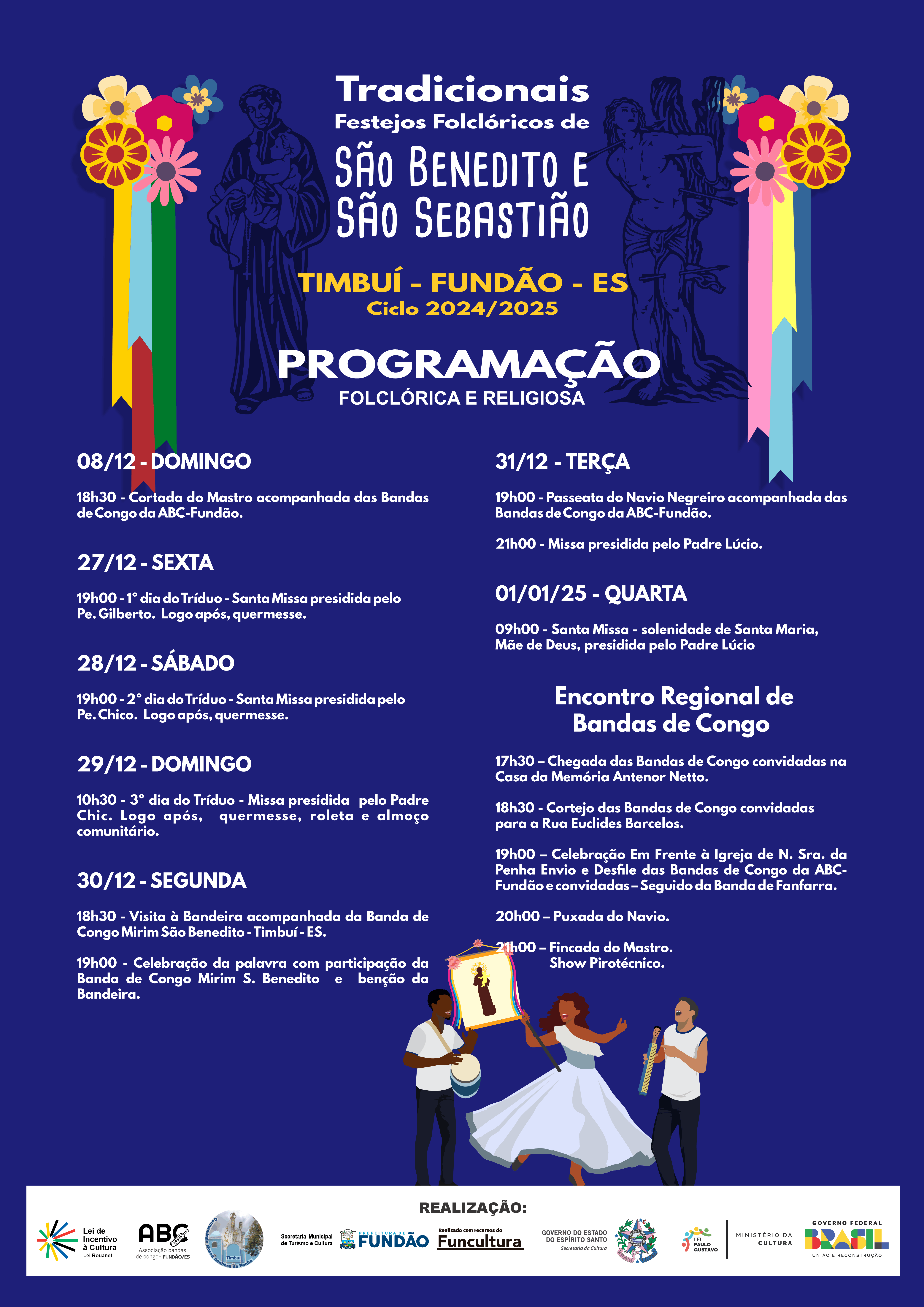 Está no ar a programação oficial dos Tradicionais Festejos Folclóricos de São Benedito e São Sebastião 2025! 🎉✨ 🗓️ De 11 a 19 de janeiro,